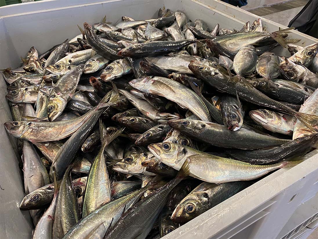 El jurel (también conocido como chicharro) es un pez pelágico muy abundante en el mar Cantábrico y fácil de reconocer por su nado en grandes bancos perfectamente sincronizados.