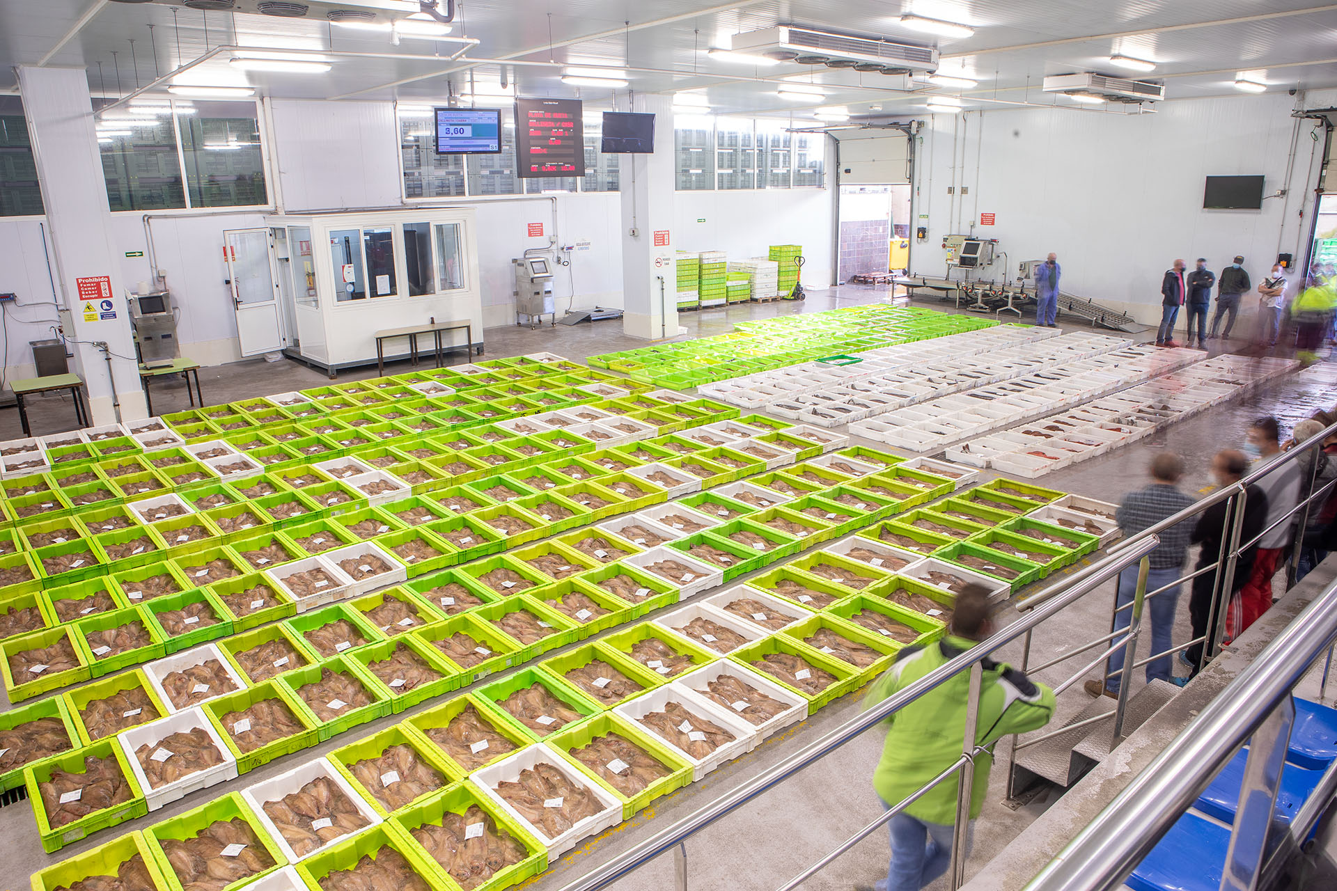 Tras la llegada de los barcos al puerto y la descarga del pescado, las capturas se clasifican por especies, tamaños y calidades. Posteriormente se colocan en cajas que pasan por la sala de subastas, se pesa caja a caja y se expone para la venta, donde compradores autorizados:  pescaderías, mayoristas, minorista, frigoríficos, grandes superficies y distribuidores, pujan por el producto.